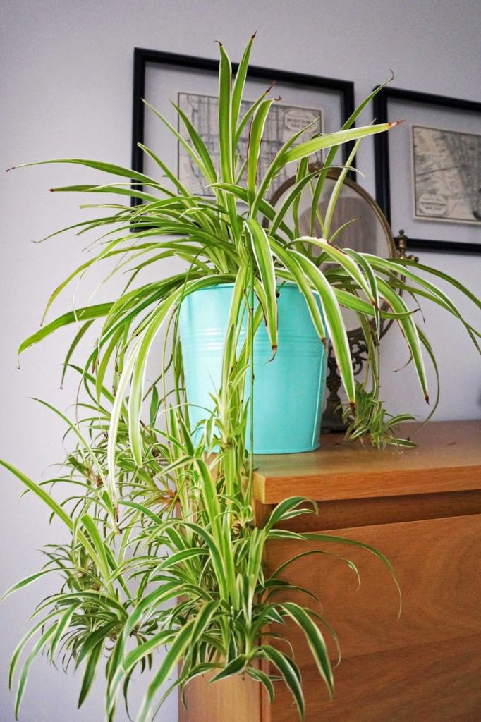 Spider plant: This plant is by far the easiest indoor plant to grow and care for! I highly recommend this plant to all the beginners. It needs indirect bright to medium light to thrive and slightly moist soil. In summer and spring, it’s sufficient to water them once a week but in winters I’d suggest wait for the soil to dry out completely. A small bonus is that this plant is quite easy to propagate through water as well.