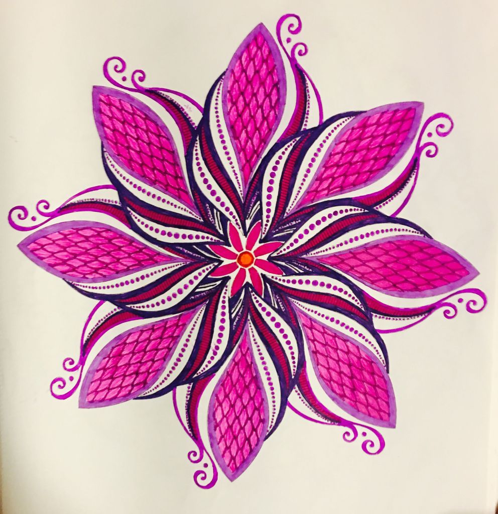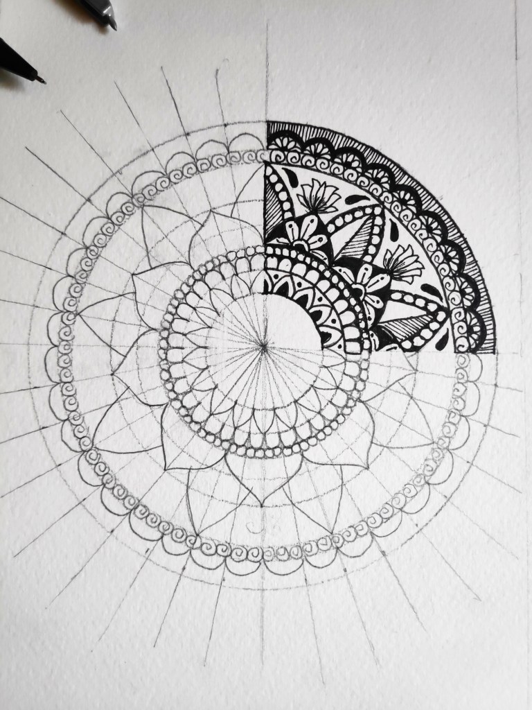 If I talk about my own experience, when I create a mandala design, it helps me clear my mind as I focus on the design that I’m about to draw. Doing so kind of distracts me from whatever uneasiness I’m feeling that day. Even if I get distracted and start thinking about other things that I need to do, (which in turn makes me more anxious) I simply try to refocus on the mandala and the intricate, repetitive patterns. It often happens that while creating the mandala I completely lose track of time and when I finish, I feel less stressed and more in control of my emotions than ever.