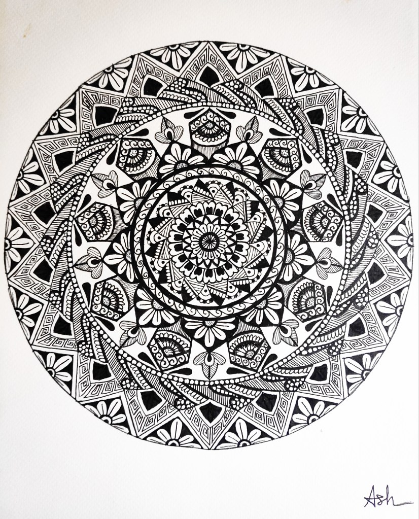 Aside from being a historically rich art style, mandala art is also considered a form of therapy, pioneered by a Swiss psychologist Carl Jung as a result of his longtime appreciation of Indian philosophy and traditions. He studied the sacred meaning and healing potential of mandalas extensively. An interesting aspect of the mandala art therapy is the fact that each mandala design is like a snapshot of the emotional state of its creator. Therapists urge their clients to create a mandala that represents their feelings at a particular point in time. Some also encourage their clients to create a “mandala journal” to observe a visual representation of their emotions over time. This approach has been especially successful with children and young adults. Personally, I use the mandala art as means to express/deal with my rather negative emotions, such as anxiety, fear and sometimes anger.