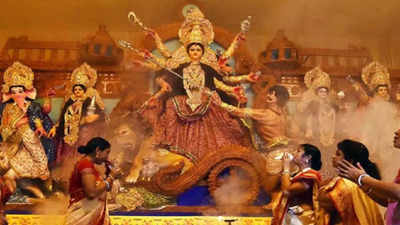 In the eastern and north-east India, the highlight of this festival is the ‘Durga Puja‘ which is celebrated on the last five days of Navratri. In India, the city of Kolkata is probably the best location to visit during this festival. People start planning for the ‘Puja’ months in advance. The actual five days of the puja are meant for resting, visiting various ‘pandals’ (a temporary shelter, mostly made of erected poles supporting a roof made out of mats and bamboo) with your friends and family and just enjoying the vibe of the festival. Some of these pandals are super fancy and each of them have a different theme. But the most common component of any of the pandals is a gorgeously decorated, life-size idol of the goddess Durga . Usually, goddess Durga is shown with various weapons in her hand, riding on a lion. Lion signifies the will power, while the weapons are symbols the focus and severity needed to destroy the negativity in our minds.