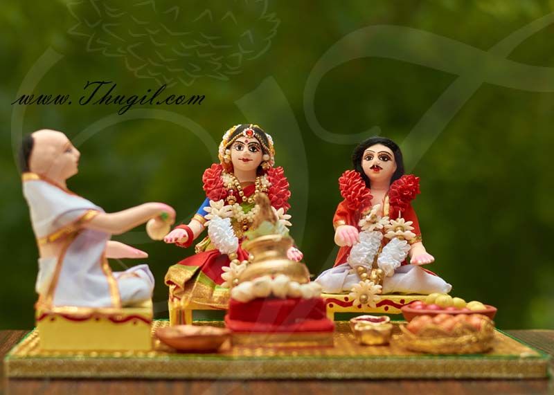 In south India, Navratri is celebrated quite differently and is more of an intimate affair. People invite their friends, relatives and neighbors over to look at the Kolu/Golu, which is basically an exhibition of various dolls and figurines made out of clay and wood by the rural artisan. They are usually arranged in odd numbers of steps or tiers (like 5 or 7) to tell a story. While goddess-related theme is common for the dolls, some also include life developments such as anticipated wedding within the family or friends. Your loved ones come over everyday bearing gifts to look at the display, chit-chat, to eat delicious food and sometimes to dance haha!
